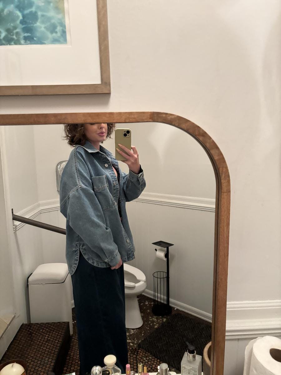 Your new go-to denim layer. Romy is that perfect oversized jacket you throw on and instantly feel put together. The drop shoulders, curved hem and clean stitching details give it that effortless, vintage-inspired vibe you’ve been looking for.